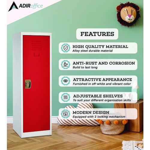 The minimalist design of our lockers makes them suitable for a wide range of spaces. Each is accompanied by coat and bag hooks which make the organization more accessible than ever, encouraging children to be responsible and independent. Additionally, the vented doors ensure proper air circulation, keeping your child's belongings fresh and dry. As a bonus, adorned on every door are metal name plates that are great for locker assignments or personalization as you see fit.Note: This is a non-returnable item.