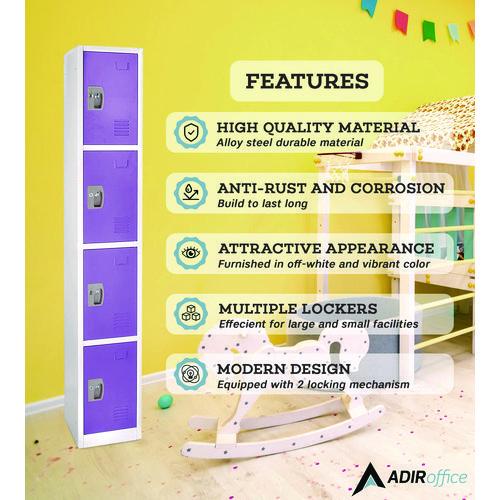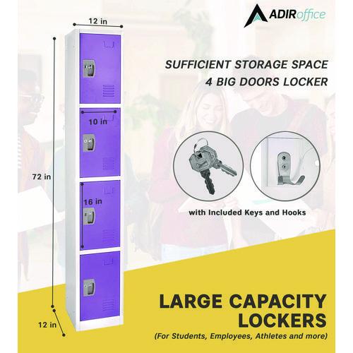 Steel Storage Locker, 4 Compartment, 12 x 12 x 72, Purple