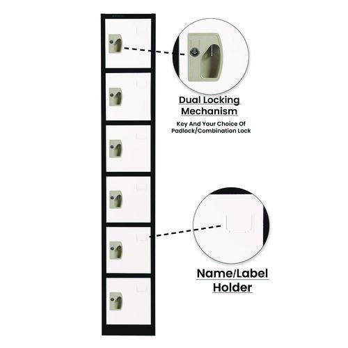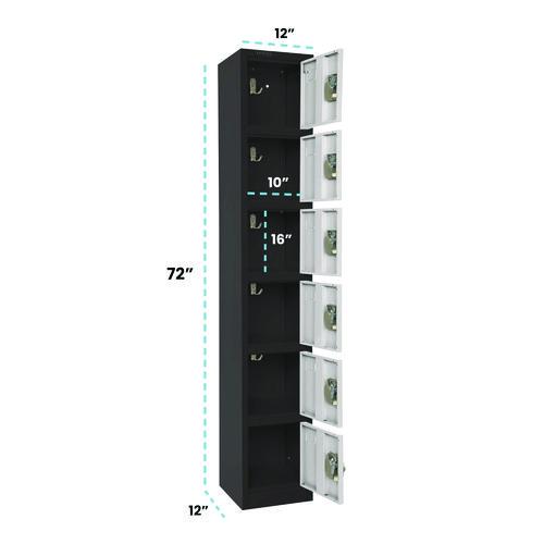 Steel Storage Locker, 6 Compartment, 12 x 12 x 72, Black Body/White Doors