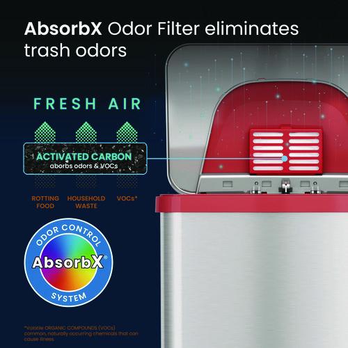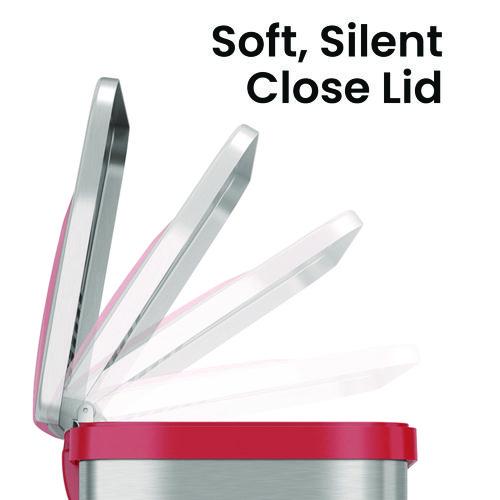 Step Pedal-Sensor Trash Can, 13 gal, Plastic/Stainless Steel, Silver/Red