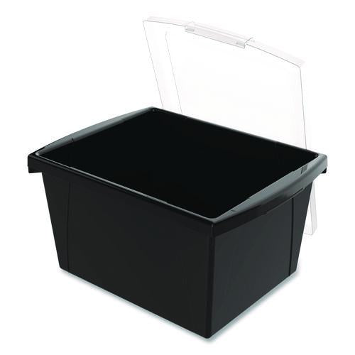 Storage Bin with Lid, 4 gal, 11.25" x 11.25" x 7.87", Black, 6/Pack