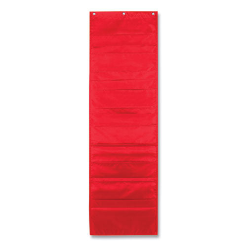 Storage Pocket Chart, 10 Pockets, Hanger Grommets, 14 x 47, Red