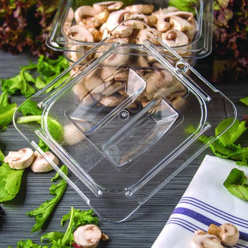StorPlus lid is durable with polycarbonate construction that resists shattering, cracking and staining. It features a molded handle that facilitates easy gripping. Lid limits air exposure to food by resting on the pan rim. With a universal fit, this lid fits most major food pan brands.