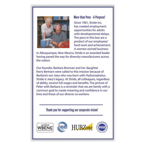 Make a statement that stands out with silky smooth, bold writing StrideRio Retractable Gel Pens. Rapid Dry technology minimizes the potential for smudges, adding the convenience of a ballpoint to a water-based gel-ink pen's wonderful scratch-free, easy-glide properties. Easy-grip barrel with contoured, cushioned grip helps ensure every minute of writing is as comfortable as it can be. Durable steel conical tip adds to the inherent bold qualities of the gel ink to deliver strong, clean, precise lines. Translucent barrel allows you to easily keep an eye on your remaining ink supply.