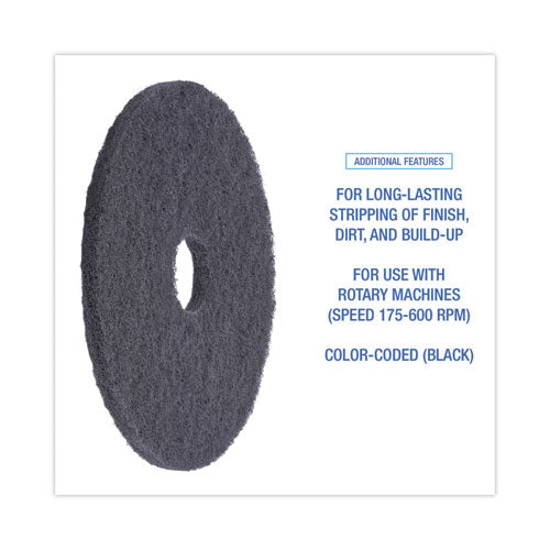 Stripping Floor Pads, 16" Diameter, Black, 5/Carton