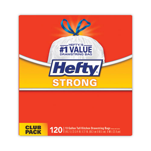 Strong Tall Kitchen Drawstring Bags, 13 gal, 24" x 27.75", White, 120/Box