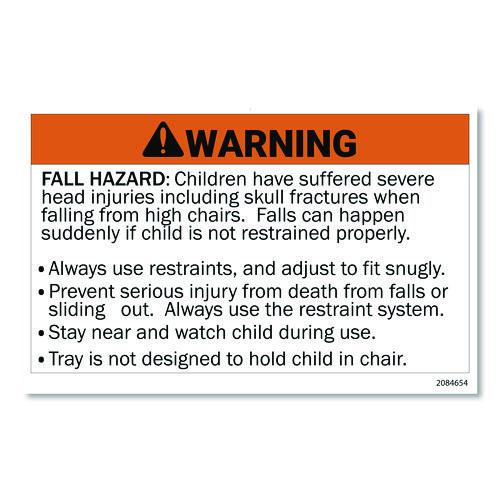 Attractive contemporary styling complements most dining room and activity room decor schemes. Microban antimicrobial product protection helps prevent the growth of stain- and odor-causing bacteria, keeping chairs looking new. No-tilt/no-pinch design provides peace of mind. Rust-, chip- and dent-proof heavy-duty molded plastic cleans up easily with soap and water. Adjustable, one-piece T-bar and safety harness comfortably secures older infants and toddlers. Convenient backrest handle enables easy, one-handed maneuvering.Note: This is a non-returnable item.