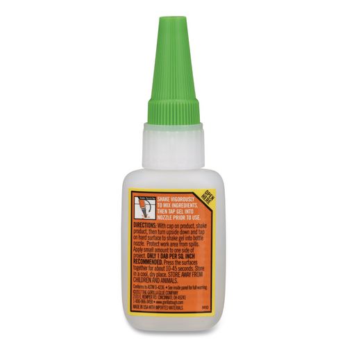 Gorilla® Super Glue Gel is an easy-to-use, thicker and more controlled formula great for multiple surfaces and vertical applications. Impact tough and reinforced to increase impact resistance and strength. Anti-clog cap keeps glue from drying out. Versatile and bonds plastic, wood, metal, ceramic, rubber, leather, paper and more. Fast setting and dries in 10-45 seconds with no clamping required.