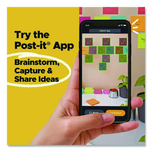 Experience the power of 2X stickiness and add joy to your day with the celebrated rainbow hues of the Playful Primaries collection. Super Sticky Notes stick to practically everything, everywhere! Revolutionary technology ensures your notes will stick securely to most surfaces yet remove cleanly! Versatile and essential, they're the perfect solution for lists, reminders, color-coding, labeling, brainstorming, storyboarding and even mural art. As they adhere firmly to walls, windows, doors, worksurfaces, mirrors and more, you can stick and restick them wherever they're most likely to be noticed. To enhance your note-taking experience, download the free Post-it® App to your smartphone or tablet and instantly capture, save and share your important notes.