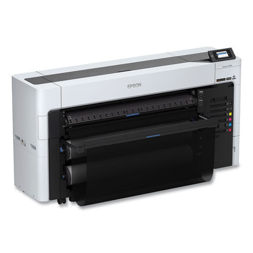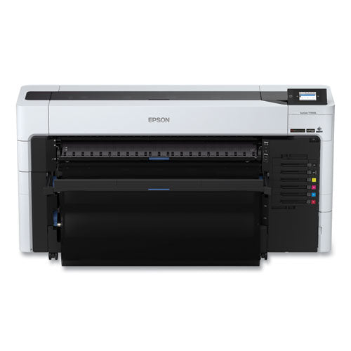 Epson delivers a first-of-its-kind design that redefines speed, versatility and efficiency for its class: the SureColor® T7770DL. Having the smallest footprint in its class—up to 25% smaller than its competition—and full-front operation means the T7770DL fits where other printers don't. It's designed for outstanding quality, sharpness and speed, generating technical drawings at production-class speeds over 1,400 ft/hr2, A1/D-size prints in as little as 16 seconds, and graphics at speeds up to 300 ft2/hr. Its innovative UltraChrome® XD3 six-ink set with dedicated Red Ink opens the door to both an extraordinary color gamut for a production printer and rich red branding colors. Built with a 1.6-liter bulk ink pack system (ink sold separately), this high-quality printer provides over double the ink capacity of previous generations for a remarkably low ink cost per milliliter, as well as helps minimize waste when compared to Epson® SureColor T-Series cartridge systems. And simple, carefree operation combined with new levels of versatility and media flexibility helps users do more using less space—all with a low total cost of ownership. Add it all up, and this is not just a one-of-a-kind printer: it's the new benchmark in high-speed CAD and graphics.Package Includes: AC Power Cable; Borderless Maintenance Box; Maintenance Box; Start Here Poster; Two-Roll Media AdapterNote: This is a non-returnable item.