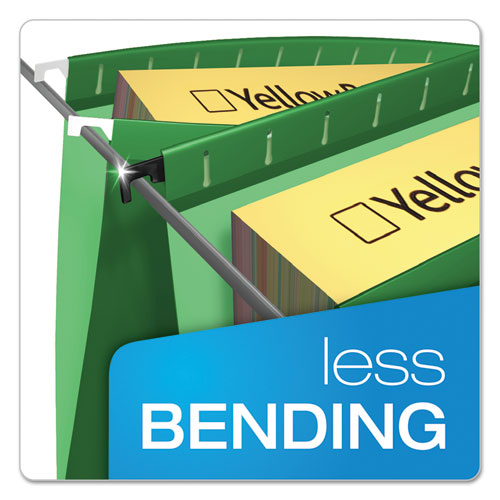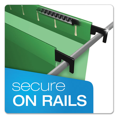 Look no further for one of the smartest, most innovative hanging folders around. Features SureHook™ technology with revolutionary built-in tension springs. Rods bend less while folders stay on rails and slide with ease. Rods and hooks are stronger and sturdier. Folders work with existing systems. Patented polylaminate reinforced tops and bottoms provide strength. Lighter interior colors help prevent misfiles. Includes tabs and inserts.Package Includes: (25) Plastic Tabs; (1) Sheet of Inserts
