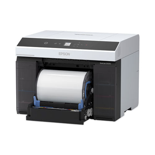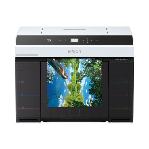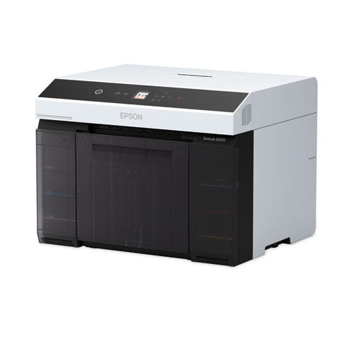 Engineered for high-production printing, the SureLab D1070 is capable of producing up to 460, 4" x 6", 300, 5" x 7" and 165, 8" x 10" prints per hour for photo, event and retail environments. Featuring the latest in professional imaging technology, this modern minilab uses a robust print engine, coupling our advanced MicroPiezo® AMC™ printhead and vivid UltraChrome® D6r-S Ink to consistently deliver crisp, vibrant pictures on a variety of paper finishes and sizes. For improved usability, this minilab features a 1.44" LCD screen, built-in wireless connectivity and integrated output tray, all in a sleek, compact footprint.Package Includes: AC Power Cable; Maintenance Cartridge; Spindle Unit; User GuideNote: This is a non-returnable item.
