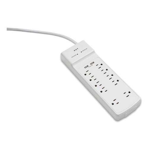Surge Protector, 10 AC Outlets/2 USB Ports, 6 ft Cord, 3,000 J, White