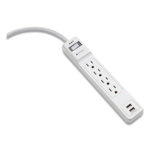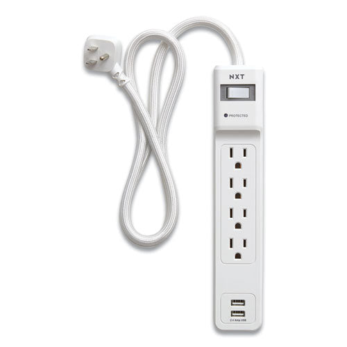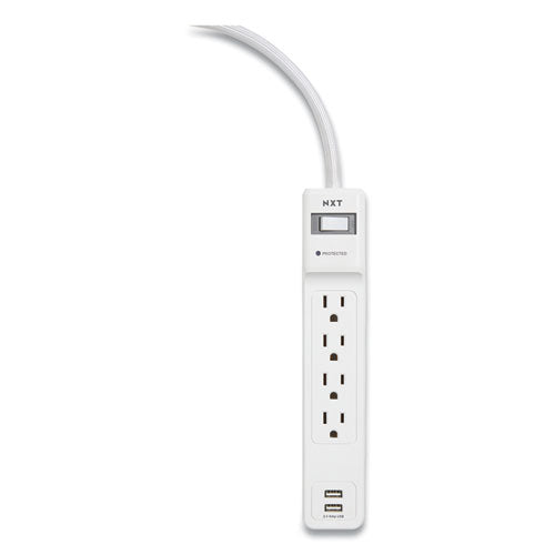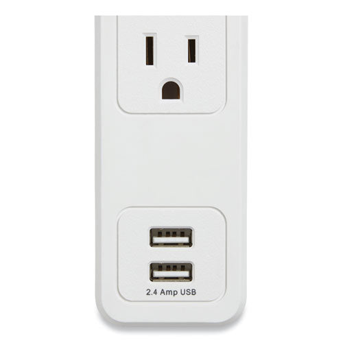 Surge Protector, 4 AC Outlets/2 USB Ports, 3 ft Cord, 600 J, White