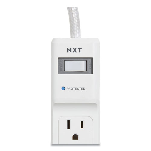 Protect delicate electronics and data from power surges. Integrated circuit breaker automatically switches off in the event of an overload that exceeds the surge protector's ability to suppress the signal. Space-saving right-angle plug.