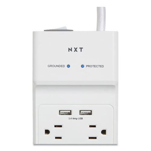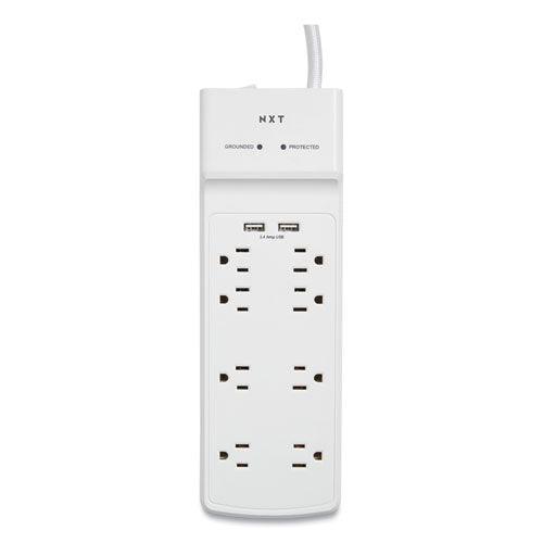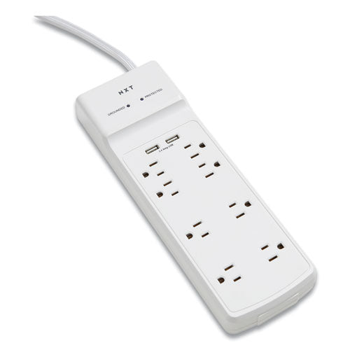 Surge Protector, 8 AC Outlets/2 USB Ports, 6 ft Cord, 2,100 J, White