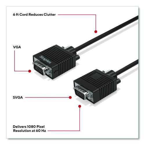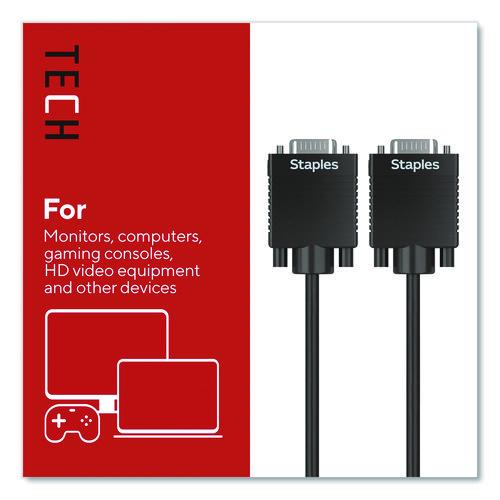 For work or entertainment an extra, larger display often comes in handy. With the Staples TECH VGA cable, you can connect additional monitors, displays, gaming consoles, projectors and more. Delivering a clear 1080 pixel resolution, this cable promises clear video for an exceptional experience. It provides ample length to connect devices across your workspace while also reducing cord clutter. This cable is the perfect choice for outfitting your work, gaming or entertainment space. Enjoy quality video so you can upgrade your home or office workspace and do your best work.