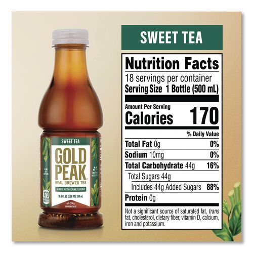 Gold Peak is real brewed tea made from tea leaves picked for peak taste—enjoy Gold Peak Sweet Tea made with real cane sugar. Perfect for the whole family, these convenient bottles let you take real brewed tea wherever you go. Whether it's a picnic in the park, watching the game, or a backyard barbeque, get that delicious fresh-brewed flavor with every sip of Gold Peak Sweet Tea. Gold Peak uses cane sugar and pure filtered water for a difference you can taste. Gold Peak has a variety of real brewed flavors that pair marvelously with any occasion, from unplanned get-togethers to holiday traditions. And the fresh flavor makes any meal feel like home cooking, whether it's lunch on the go or family takeout night, Gold Peak's real taste will match those real moments.Note: This is a non-returnable item.