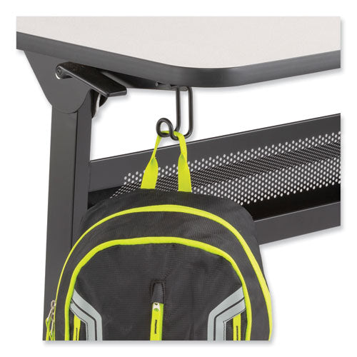 These Accessory Hooks provide additional workspace organization for backpacks, purses and other items to keep desktops clear and belongings near. Cleans up your workspace clutter and keeps your belongings off the floor. Easy to install, featuring a sleek design and powder-coated steel for durability. Add to tabletops of 1 thickness or more; hardware included.Note: This is a non-returnable item.