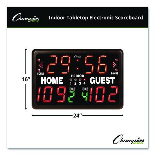 Great for games and tournaments, the Champion Sports Multi-Sport Tabletop Indoor Electronic Scoreboard is designed to keep score for any game. With a built-in horn/buzzer and period bonus with possession indicator, this electronic scoreboard can be used for many sports, including hockey, lacrosse, volleyball and wrestling. The built-in control panel offers user-friendly settings, while the large LED readouts make this scoreboard visible up to 150 ft away.Note: This is a non-returnable item.