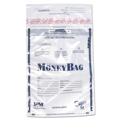 Tamper-Evident Deposit Bag, Plastic, 9 x 12, Clear, 100/Pack