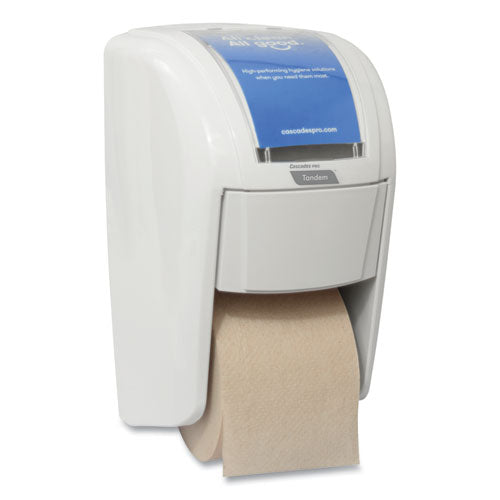 High capacity bath tissue dispenser system is ideal for high traffic areas. Spare rolls are fully covered for maximum hygiene and minimal cross-contamination. The controlled system ensures complete consumption of the first roll before accessing the next one. It also conforms to ADA standards when properly installed. High capacity system requires fewer refills and less maintenance.