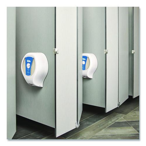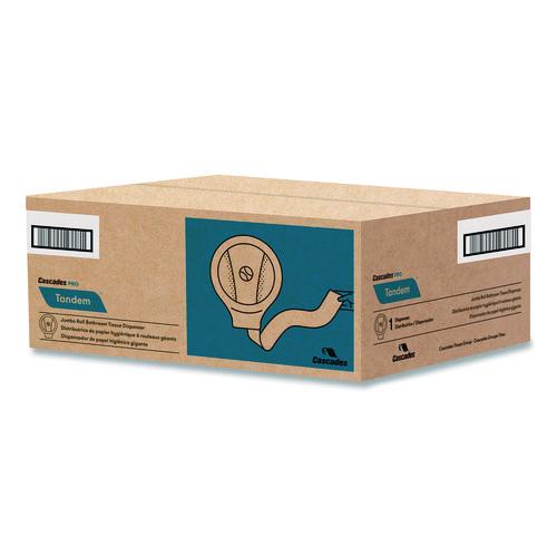 Durable, jumbo roll dispenser is designed to be compact for use in smaller stalls. The reduced-core 10'' jumbo roll dispenser holds up to 40% more tissue than 9'' universal jumbo bath dispensers, reducing labor costs and run-outs. The stub roll holder feature eliminates waste up to 20%. Exterior center knob facilitates dispensing when paper is not readily available. See-through window allows for easy monitoring, so employees know when a roll needs changing.Note: This is a non-returnable item.