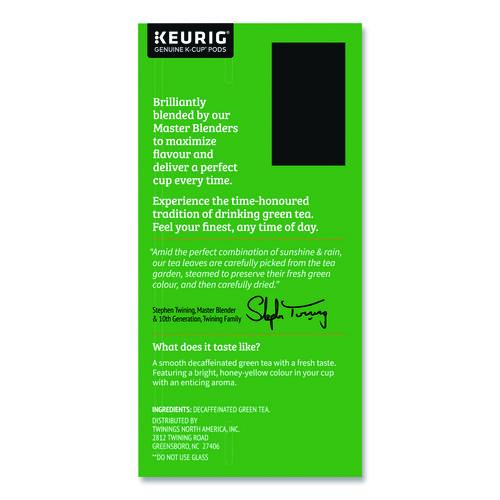 Tea K-Cups, Decaf Green Tea, 0.11 oz, 24/Box