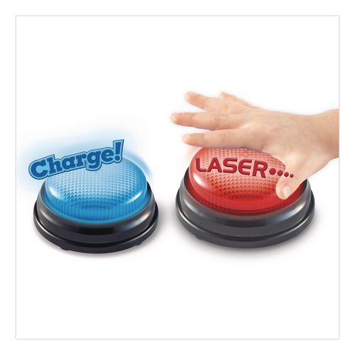Turn everyday quizzes into fun game-show-style competitions! Buzz in and win with team games in the home or classroom with this set of Team Answer Buzzers from Learning Resources! This set comes with eight game buzzers: four for the red team and four for the blue team. Once you've settled on teams for classroom game shows or at-home game nights, you'll always know who's buzzing in: each team's buzzers make unique sounds that are loud, clear and easy to tell apart! In addition to adding a fun interactive element to classroom and at-home games, this set of Team Answer Buzzers also provides great opportunities for lessons in social skills like sportsmanship, turn-taking and teamwork. Each durable game buzzer is powered by replaceable AAA batteries (sold separately), so they're ready for years of fast-paced, hands-on games for years and years to come!Note: This is a non-returnable item.
