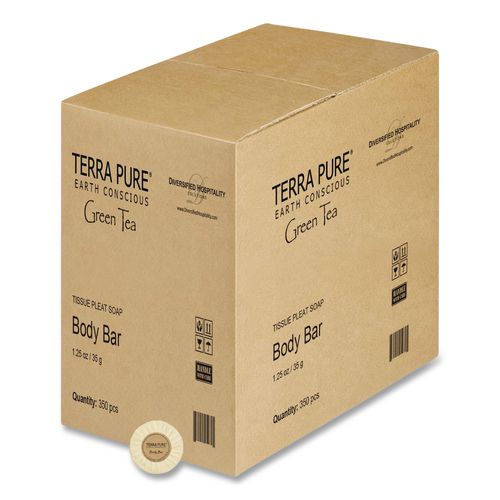 The luxurious Terra Pure® cleansing bar features a subtle, refreshing green tea fragrance that gently soothes and uplifts the senses. Carefully formulated with nourishing olive oil and aloe vera extract, the cleansing soap bar provides a calming, hydrating cleanse suitable for all skin types. Our vegan-friendly, sulfate-free formula makes it a responsible choice for any hospitality setting. Thoughtfully wrapped in an elegant tissue pleat, it offers a refined presentation that enhances any guest bathroom. An EcoWell® Health and Wellbeing group product, it is 100% paraben-free, gluten-free and cruelty-free; never tested on animals. The Terra Pure® cleansing bar reflects a strong commitment to wellness, sustainability and ethical standards without compromising on luxury. Designed for today's discerning guests, Terra Pure® helps create a memorable, spa-like experience with every stay.Note: This is a non-returnable item.