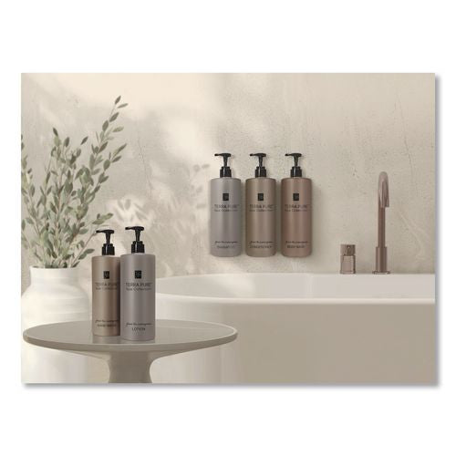 Featuring a refreshing fragrance, the Terra Pure® Conditioner is infused with fresh aloe vera and pure olive oil. These liquids have paraben- and gluten-free formulas. The EcoLux® Air pump dispenser works with a concealed, tamper-resistant bracket (sold separately) to create a sleek system with a modern, seamless line. To change out the long-lasting bottle, a quick press of the key releases the empty dispenser. Then simply slide down a fresh conditioner bottle to lock it into place. The effortless process significantly reduces housekeeping time for overall cost savings.Note: This is a non-returnable item.