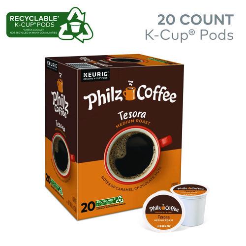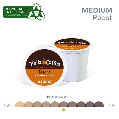 Get ready for Philz Coffee Tesora, a satisfying coffee with notes of caramel, chocolate and nuts, seven years in the making. This treasure is the quintessential Philz blend crafted for coffee drinkers, devoted regulars and newcomers alike who frequent the cafes in California and Chicago. Now you can bring that one-of-a-kind experience into your home to enjoy in your very own kitchen. Philz Coffee Tesora is a medium roast coffee blend that has been meticulously crafted with delightful hints of caramel, chocolate and nuts to brighten your day. Each and every one of our coffee blends is created with one goal: to better everyone's day, every day, one cup of coffee at a time. With an unwavering focus on quality, sustainability and community, every cup of coffee is built on proprietary blends skillfully roasted and blended with love. These single-serve K-Cup® pods are filled with Arabica coffee and are compatible with all Keurig K-Cup® Pod Single-Serve Coffee Makers and brew up to 12 oz coffees each. Simple. Delicious. And recyclable. Enjoy the same great-tasting coffee you know and love, and when you're done, just peel, empty and recycle.Note: This is a non-returnable item.