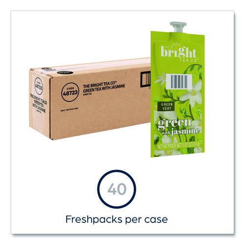 The Bright Tea Co.® Green with Jasmine Tea Freshpack features a light-bodied flavor with a refreshing taste and fragrant aroma of jasmine. Our brewing process, where nothing touches the ingredients other than hot water, ensures your drink does not taste like previous brews. Compatible with FLAVIA® single-serve brewers. For single-serve sustainability, innovative pouches are 100 percent recyclable through Terracycle.Note: This is a non-returnable item.
