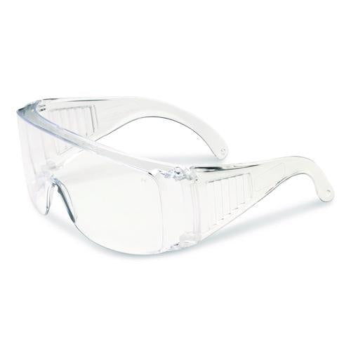 Economical with a universal fit, Bouton® The Scout™ OTG Rimless Safety Glasses are ideal for visitors and short-term applications. To provide maximum versatility, a larger than average wraparound design accommodates both stand-alone and over-corrective-eyewear use. Impact-resistant polycarbonate lens absorbs 99.9% of UV light without color distortion. Indirect temple vents help reduce fogging. Molded nose bridge helps improve the overall fit. 4 BCR (Base Curve Radius).