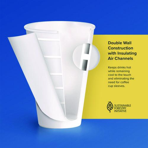 Enjoy your drink without inconvenienceinsulated, double wall paper cups eliminate the need for a cardboard sleeve. Insulating air channels reduce heat transfer, keeping the sidewall cool to the touch. The upscale coffee-themed design is perfect for any cafe or restaurant. Thermotouch insulation maintains beverage temperature. Convenient, leak-proof corresponding lids, for drinking on the go (sold separately). Four cup sizes share one lid.Note: This is a non-returnable item.