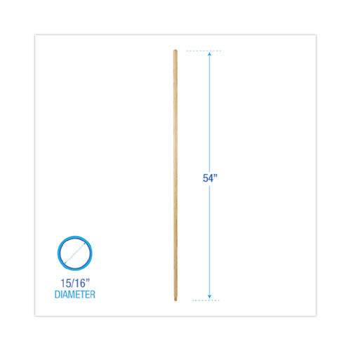 Boardwalk® Threaded End Broom Handle is a solid wood broom handle that's designed to be long-lasting for repeated use. The lacquered wood handle provides a smooth and comfortable finish that resists water and splintering. A quality crafted handle that measures 15/16" in diameter and is finished with a rounded tip for easy maneuvering. Compatible with a variety of broom heads, simply screw in the handle to secure to the head. Broom heads are sold separately.