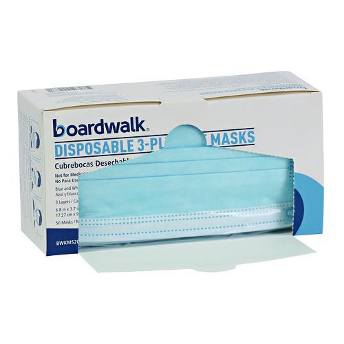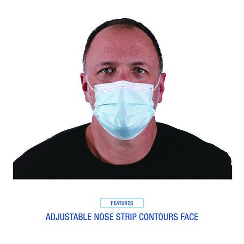 Durable and flexible elastic ear loop band fits around head and ears securely. One size fits all. Easy to put on and take off. Keep the blue-side outside and the nose clip on the upper side. Adjustable nose strip contour design fits face for a more comfortable fit. Breathable three-ply layers. Blue and white outer layers made of non-woven polypropylene materials. Middle layer is made from melt-blown polypropylene materials for mouth and nose protection. These masks should be disposed of after each use.Note: This is a non-returnable item.