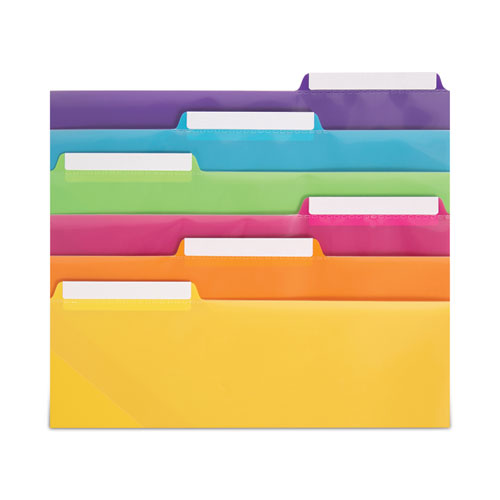 Smead Poly Index Dividers with Pocket are a great way to organize by color, day of the week or project. High-quality, tear- and water-resistant polypropylene construction delivers increased durability, and oversized tabs provide plenty of space for clear and concise labeling. A handy, translucent slash pocket on the front of each divider holds up to 10 sheets of paper, making it easy to keep track of loose materials. Ideal for work and school, they're also pre-punched for standard, three-ring binders, and they're easy to clean, too.