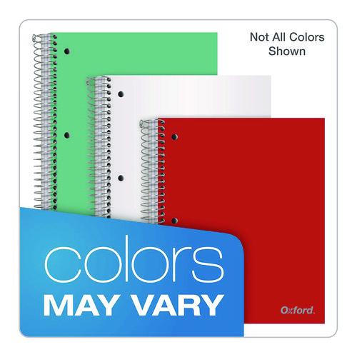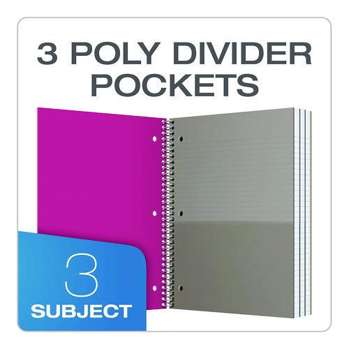 This Oxford three-subject poly notebook comes in bright colors and is three-hole punched to fit a standard binder. Includes three poly divider pockets and a strong no-snag coil. Comes in assorted colors.