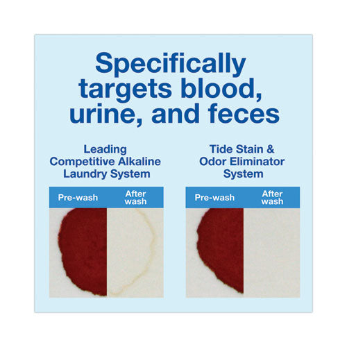 A professional laundry additive that removes soil and tough stains to deliver an exceptional standard of clean. Tide Professional™ Stain and Soil Remover can save your business time and money by reducing linen replacement, pretreatment, and the need to rewash due to staining. When used in conjunction with Tide Professional™ detergent, stains are targeted at a molecular level, making tough stains easier to remove. For Use ONLY with Procter & Gamble Professional Approved Dispensing System.