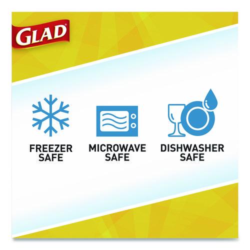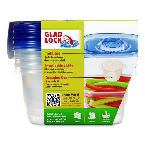 Glad To Go Lunch food containers prevent soggy salads and foods by keeping dry and wet ingredients separate until you are ready to eat. These containers feature little dressing cups that snap tightly into the lids. Containers are the perfect size for packing items like salad and dressing, dip and chips, or breakfast items like pancake and syrup. Lids snap tightly to dressing cups and containers to prevent leaks and spills. BPA free and microwave safe, you can safely heat food in these containers. Clean-up is quick and easy because they are dishwasher safe. Glad To Go containers are designed for life on the go. When you use Glad, you know your food is receiving quality protection. Ideal for use in restaurants and other commercial facilities.