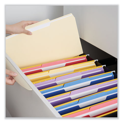 Classic folder constructed to perform in busy offices. Bottom is triple-scored for no-sag expansion. Undercut at tabs for increased indexing area offering plenty of space for more detailed or larger labeling.