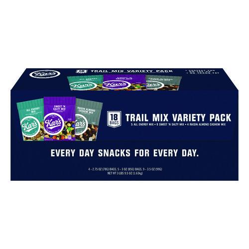 Great tasting snacks that are both wholesome and fun to eat—at home, at the office or on the go. Ideal for vending and concessions.Package Includes: (5) 2 oz All Energy Mix; (4) 2.75 oz Raisin Almond Cashew Mix; (9) 3.5 oz Sweet 'N Salty MixNote: This is a non-returnable item.