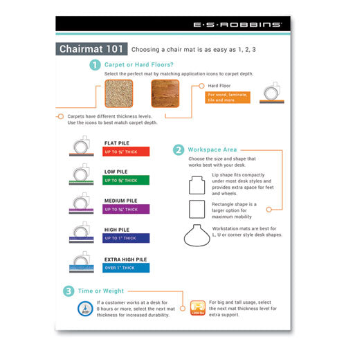 Protects laminate, wood, tile, carpet and other floor surfaces from caster wear and tear. Crafted with a durable decorative top layer. Instantly add style to your workspace with the beauty of a designer chair mat. Rectangular shape provides a large surface area for maximum mobility.Note: This is a non-returnable item.