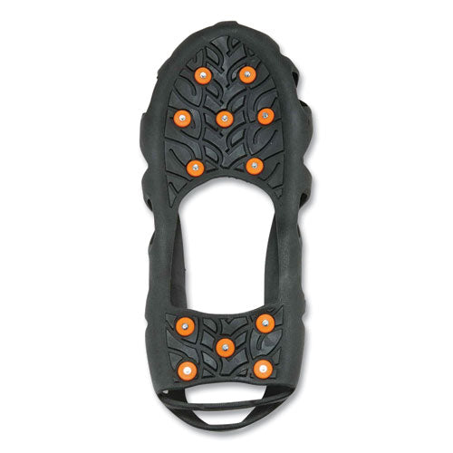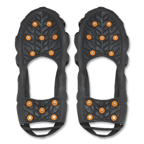 The TREX 6304 Step-In Ice Cleats are lightweight ice grips for boots and shoes that provide tenacious traction and extra stability on ice and snow. Stretchable one-piece design offers grip to prevent slip and fall injuries on the ice. Contoured step-in 3D design easily wraps around boots and shoes for a superior fit. These ice grippers feature 12 rugged carbon steel cleats on the ball and heel of foot for grip on slippery terrain. Available in multiple sizes and will fit over any style of boot or shoe for traction and stability during winter work or other winter outdoor activities. Tested to be flexible in temperatures down to -40°F (-40°C), the contoured 3D design allows you to step into these ice traction cleats for fast and easy on/off. TREX Ice Traction should fit snugly on your boot or shoe. Stretchy, one-piece design means no tightening or adjustments needed. Use your shoe/boot size to determine the approximate size.Note: This is a non-returnable item.