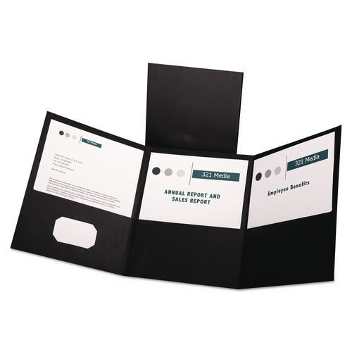 Tri-Fold Folder w/3 Pockets, 150-Sheet Capacity, 11 x 8.5, Black, 20/Box