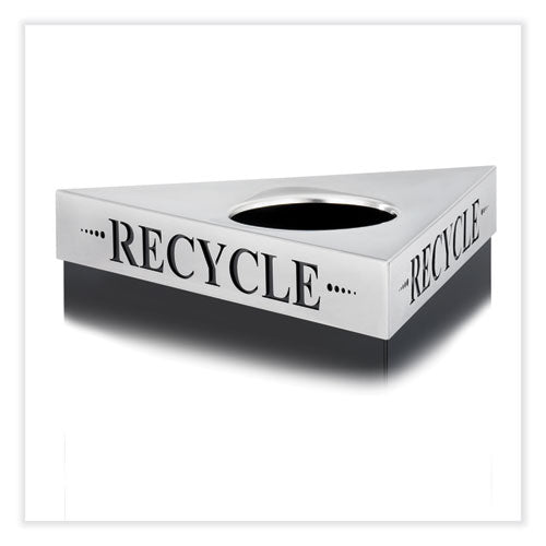 The sleek, stainless steel triangular lid of the Trifecta™ Receptacle System is both stylish and functional, with a laser-cut inscription to clearly identify recyclables (unless otherwise specified). Designed as part of the flexible Trifecta™ system, it pairs seamlessly with four receptacles (sold separately) to create a customized recycling solution. Whether used in a corporate office, classroom, or industrial space, these lids offer a multitude of configurations to suit any workplace, making it easy to promote sustainability while keeping your space organized and clutter-free. The modern design ensures durability and a professional appearance that enhances any environment.Note: This is a non-returnable item.