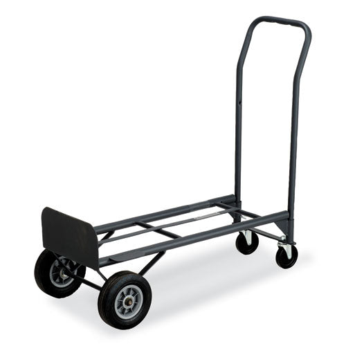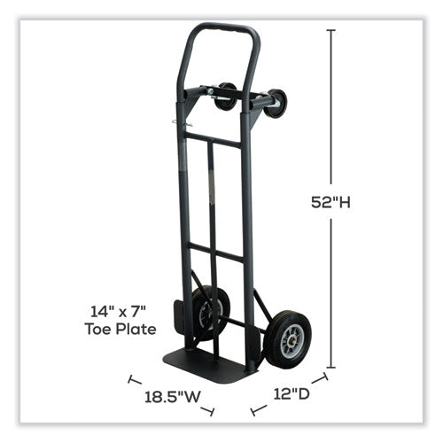 This dolly converts from a two-wheeled hand truck to four-wheeled platform truck. The hand truck features a sliding handle system that shifts between upright and platform use. Moved material rests on the 14 x 7 toe plate, mobile on 8 rubber wheels with ball bearings. The hand cart is rated up to 400 lbs. (2 wheels), 500 lbs. (4 wheels).Note: This is a non-returnable item.