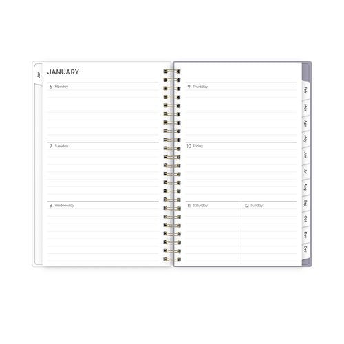 Give your schedule a fresh start and bring order to your busy life with the beautiful Tula Weekly/Monthly Planner. On the cover, its soft floral motif helps inspire peace and tranquility; and inside, a range of planning and scheduling tools help make getting organized easy. Weekly spreads feature an open scheduling format for every day of the week. Monthly spreads provide plenty of space for daily notations and a separate section for capturing important tasks and project details. Each month's durable, coated tab offers quick access to the past, present and future. Six bonus, non-tabbed, past-month spreads run from July through December to help you with your transition into the new year. Additional resources in the back of the book help you plan out your year and keep everything on track. Flexible cover and snag-free twin-wire binding work together to ensure that everything stays neatly together. Thick, premium, acid-free pages prevent your pen's ink from bleeding through. Printed using soy-based inks.Note: This is a non-returnable item.