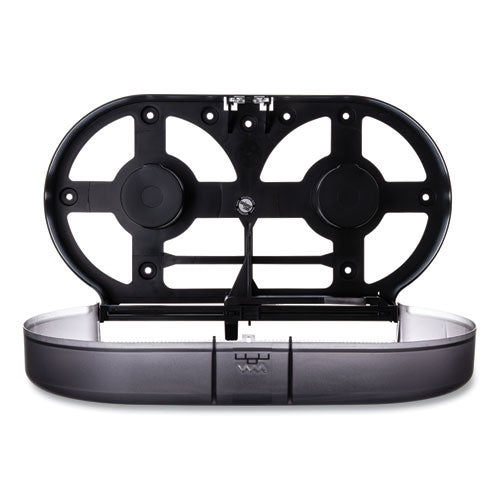 The industryleading Twin 9" JBT Dispenser is one of San Jamar's most versatile jumbo bath tissue dispensers. This dispenser offers the highest capacity of any tissue dispenser. Its slim and compact size makes it a perfect fit in any washroom. The Infinity System® provides continuous availability of tissue and prevents access to the spare roll until it is completely empty, eliminating stub roll waste.Package Includes: (1) Key